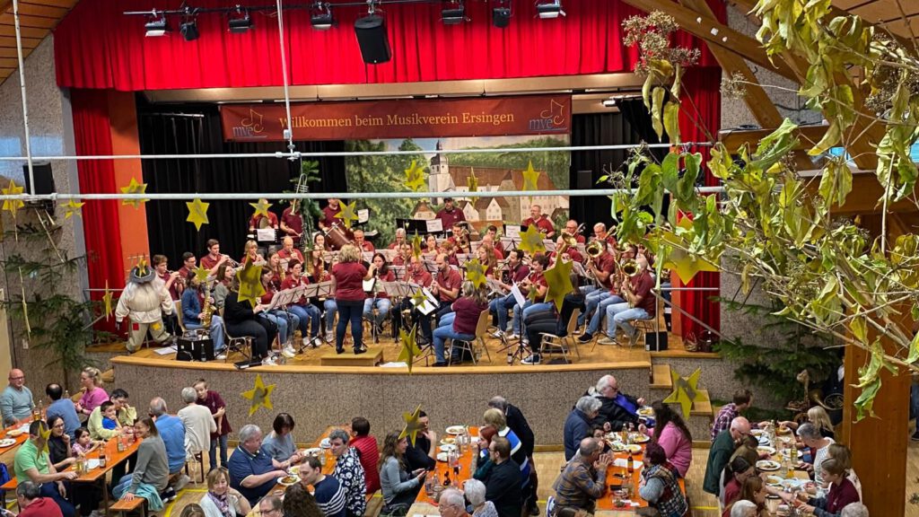 Begonnen hat das Kirwe Wochenende mit der Märchenstunde mit dem Bürgermeister gefolgt vom Fassanstich, der durch die Jugendkapelle unter der Leitung von Claudia Vögele musikalisch umrahmt wurde. Eine kleine Besetzung des Großen Blasorchesters heizte die Stimmung in der Halle ein, bis im Anschluss die Partyband Kirchberger übernahm und die Gäste ausgelassen tanzen und feiern konnten. Das Programm am Sonntag startete mit dem Frühschoppen durch das Große Blasorchester unter der Leitung von Eva Riexinger. Im Anschluss daran haben die Blockflötengruppe, angeleitet von Natascha Stelzer, sowie die Schülerkapelle mit ihrer Dirigebntin Lillian Reiling ihre neuen Stücke präsentiert. Am Sonntagnachmittag durften wir dann den Musikverein Söllingen in der Turn- und Festhalle begrüßen. Nach der Verlosung der Kirwesau spielte erneut eine kleine Besetzung zum musikalischen Ausklang der Kirwe 2025.